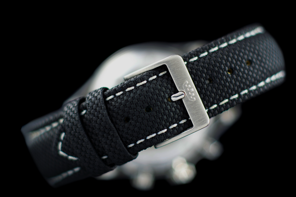eredeti textil-bőr szíj tüskecsattal, dupla doboz, kártya, egy év garancia